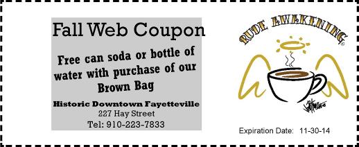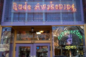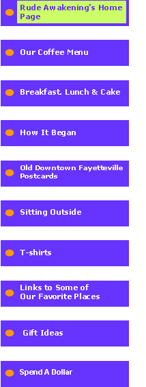 Rude Awakening’s Home Page | Our Coffee Menu | Breakfast. Lunch & Cake | How It Began | Old Downtown Fayetteville Postcards | Sitting Outside | T-shirts | Links to Some of