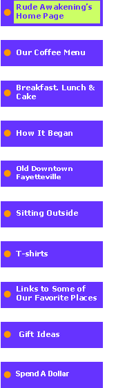 227 Hay Street is a two-story brick building circa 1914. It began it’s life as Johnson’s Café and was known for most of it’s later life as Brady’s Soda Shop. In December 1999 it reopened as the home of Rude Awakening coffee house. In 1998 Bruce and Molly Arnold purchased 227 Hay St. in historic downtown Fayetteville, NC. Our goal was to renovate the building in accordance with the standards of the Historic Preservation Office. The storefront is original including the leaded glass panel. Upstairs houses a one bedroom apartment and downstairs is the home of the best coffee in Fayetteville. We hope to see you there. |
