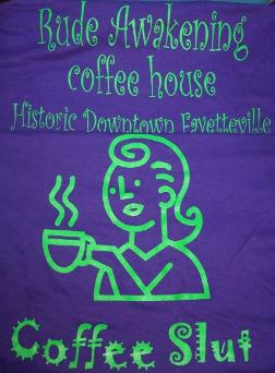Rude Awakening’s Home Page | Our Coffee Menu | Breakfast. Lunch & Cake | How It Began | Old Downtown Fayetteville Postcards | Sitting Outside | T-shirts | Links to Some of
